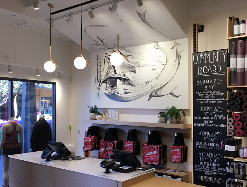 The mural is located in the new lululemon athletica retail store at the Del Monte Center, Monterey, CA.