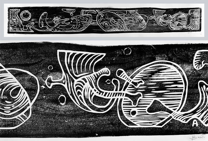 Number 11, 2012, woodcut print, 1 x 7 feet (with detail).