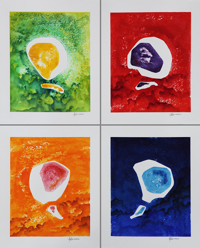 Numbers 15,16,17 and 18, 2012, water colour, on hot press water colour paper, 10 x 12.5 inches each.