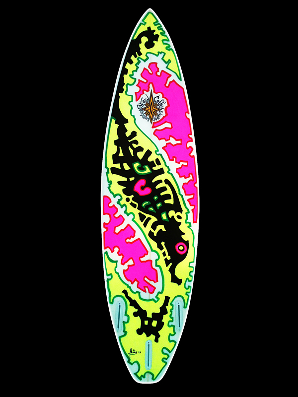 Surf Board Promo Graphic, 2012, water marker on surf board, 70 inches.