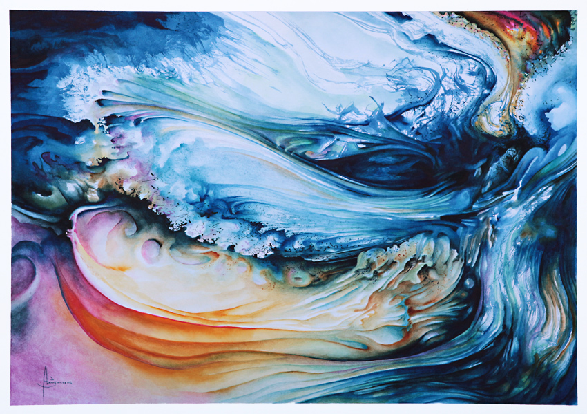 Wave 2 Big Sur, 2016, water colour on hot press water colour paper, 14 x 20 inches.